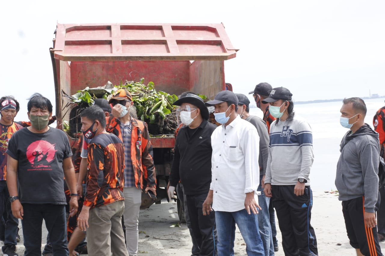 Agusrin Bersama Masyarakat Bersihkan Pantai Panjang