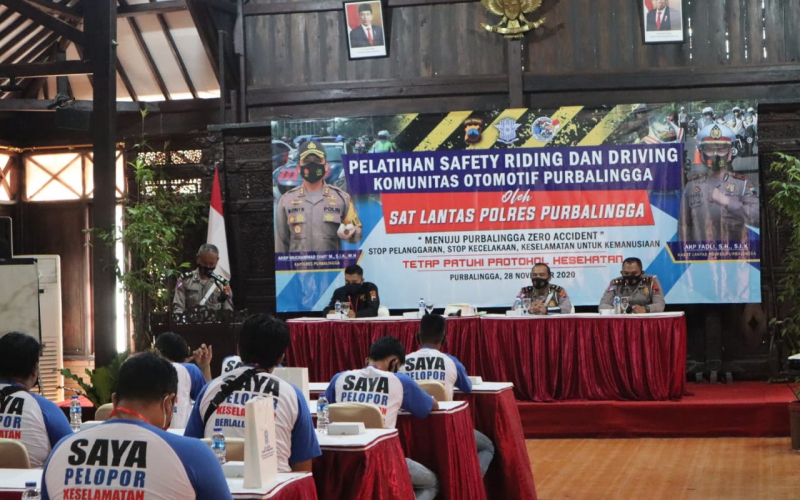 Polres Purbalingga Satuan Lalu Lintas (Satlantas) Polres Purbalingga menggelar pelatihan safety riding dan driving bagi anggota komunitas otomotif wilayah Kabupaten Purbalingga, Sabtu (28/11/2020). Kegiatan dilaksanakan di Aula Andrawina Owabong Cottage Purbalingga.