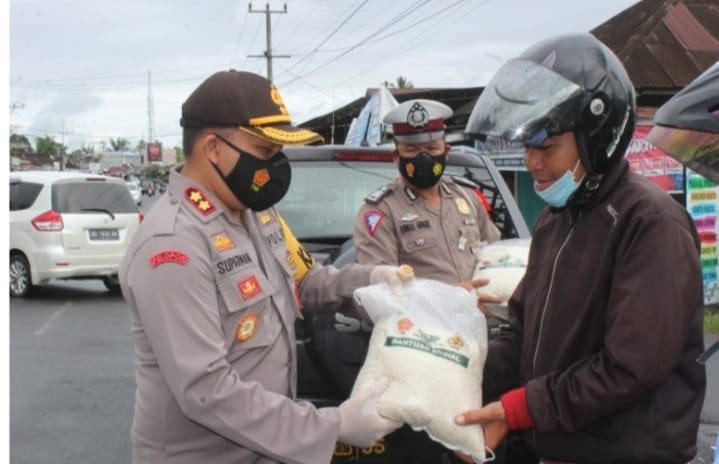 Sembako sebanyak 16 paket didistribusikan kepada masyarakat yang berprofesi sebagai tukang becak. Dalam rangka kegiatan tersebut Kapolres Kepahiang berharap dapat meringankan beban masyarakat.