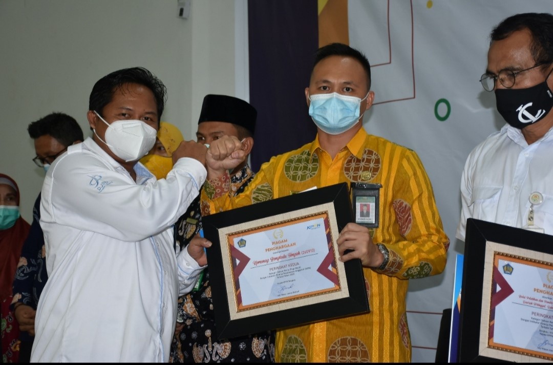 Piagam Penghargaan yang membanggakan ini di serahkan langsung oleh Kepala KPPN Bengkulu Ady Wijaya Joanes Brebeuf kepada Kepala Subbag Tata Usaha Kantor Kemenag Kabupaten Bengkulu Tengah Dr Rusman Saleh M.Pd yang pada kesempatan tersebut mewakili Kepala Kantor Kemenag Kabupaten Bengkulu Tengah H Sipuan S.Ag MM.