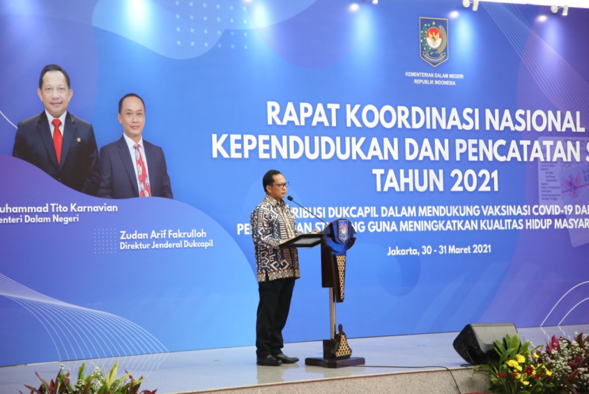 Mengusung tema “Kontribusi Dukcapil Dalam Mendukung Vaksinasi Covid-19 dan Penanganan Stunting Guna Meningkatkan Kualitas Hidup Masyarakat”, Rakornas diresmikan di Gedung Sasana Bhakti Praja, Kemendagri, Jakarta, Selasa (30/03/2021).