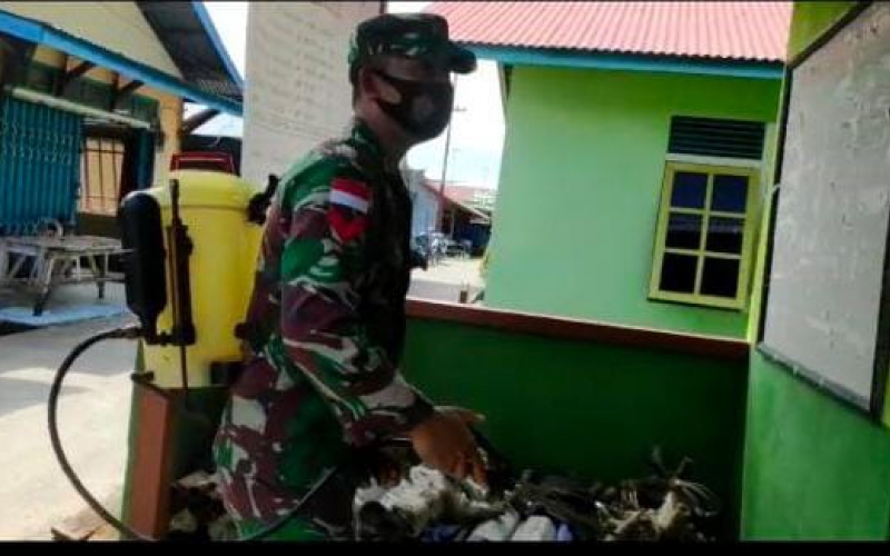 “Berdasarkan hasil koordinasi dari berbagai pihak, maka kami harus bergerak melakukan penyemprotan, tidak harus menunggu adanya kasus yang terpapar ataupun positif” ungkap Kopda Muhaimin.