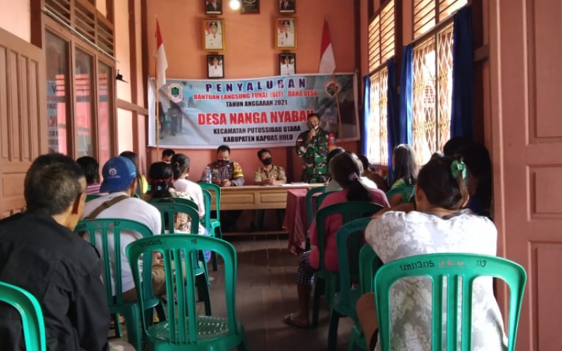 Koramil 1206-06, melalui Babinsa Praka Maksum melaksanakan monitoring dan pengamanan pembagian Dana BLT DD tersebut yang dilaksanakan di Balai desa Nanga Nyabau.