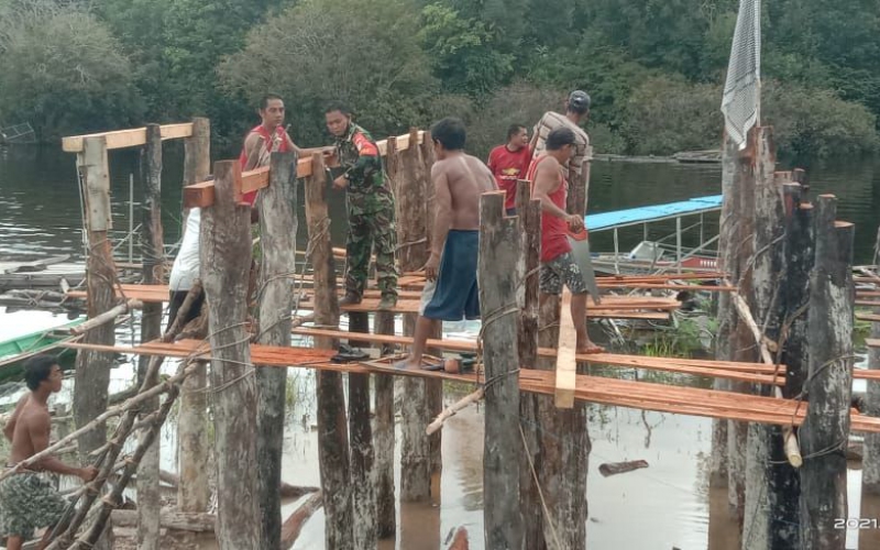 Dalam rangka memelihara budaya gotong royong melalui kegiatan Pembinaan Teritorial (Binter), Babinsa Koramil 1206-15/Suhaid Serda Yudha bersama dengan warga melaksanakan kerja bakti dalam membangun Masjid di Desa Tanjung Harapan, Kecamatan Suhaid, Kabupaten Kapuas Hulu. Sabtu (29/05/21)