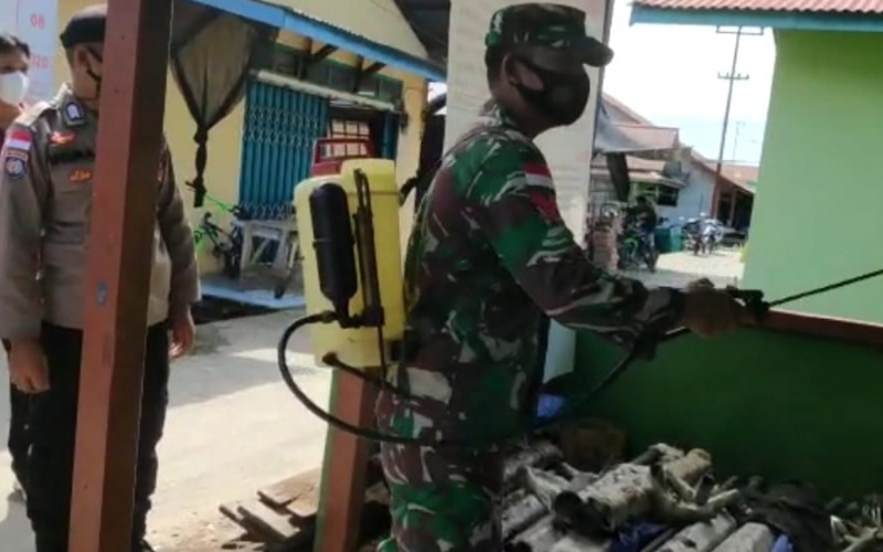 Semangat Satgas Covid-19 Jongkong Pasar terdiri Kades Jongkong Pasar Sonny S.Pd, Babinsa Jongkong Pasar Serda Andre Ginola,Kanit Propam Polsek Jongkong pasar Aipda Mutohar melaksanakan penyemprotan di lingkungan pasar Curah dan pasar Bidadari Desa Jongkong Pasar Kecamatan Jongkong. Sabtu, (29/05/2021).