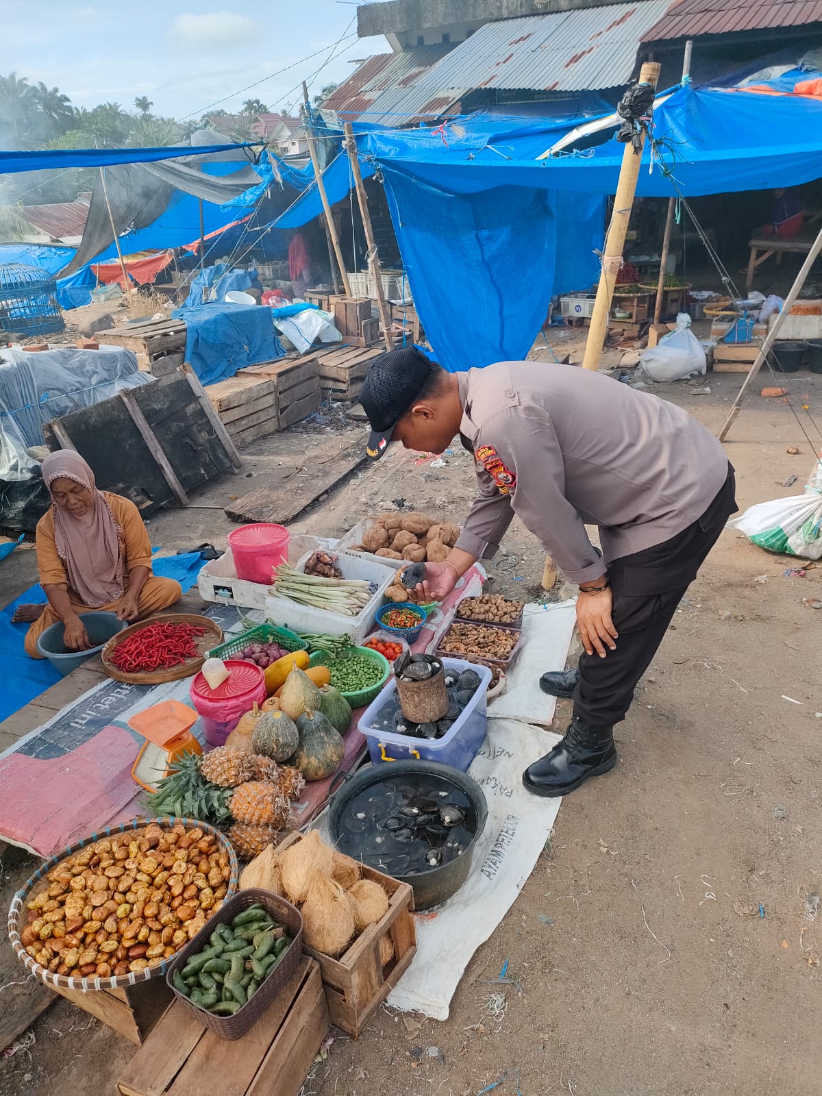 Dalam giat sambang yang di lakukan Aipda Juni ke pasar ia menyapa para pedagang yang memiliki lapak disekitar pasar, dalam dialognya dengan pedagang.
