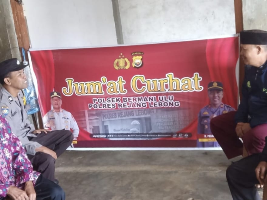 Bermani Ulu – Polsek Bermani Ulu Polres Rejang Lebong Polda Bengkulu Melaksanakan Jum’at Curhat bareng Kapolsek bersama Kanit Binmas IPDA F.SEMBIRING dan babinkamtibmas Polsek Bermani Ulu Aiptu WAWAN SEPTIANTO Di Ds. Air Bening kec. Bermani Ulu Raya Kab. Rejang Lebong.