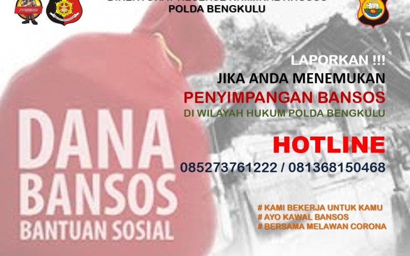 Dikatakan oleh Kabid Humas Polda Bengkulu, untuk menjamin bahwa laporan yang diberikan masyarakat terkait adanya penyelewengan bansos, pihaknya telah menyiapkan hotline khusus untuk menangani masalah bansos.