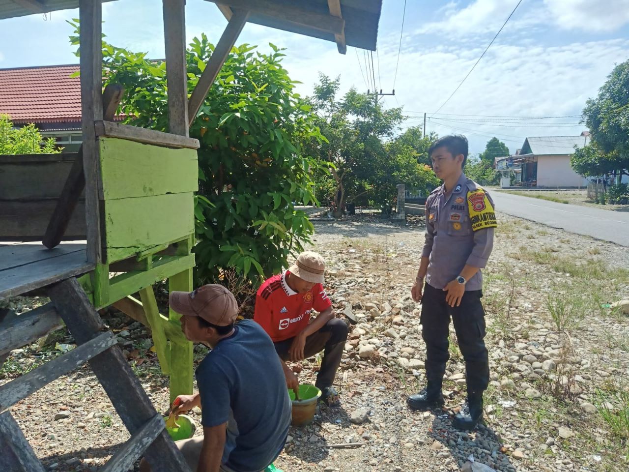 Dalam kesempatan tersebut Bhabinkamtibmas Briptu Rahman Syahputra, S.H., bersama seluruh warga desa untuk berperan dalam pembangunan Pos Kamling desa Keban Jati dengan ikut serta dalam pengecatan pos kamling desa Keban jati Kecamatan Air Nipis Kabupaten Bengkulu Selatan.