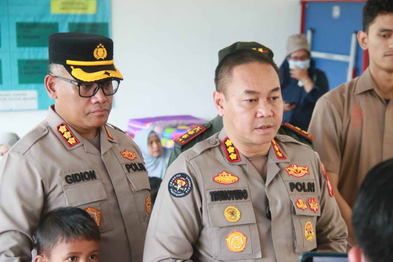 JAKARTA – Kabid Humas Polda Metro Jakarta Kombes Pol Trunoyudho turut meninjau lokasi pengungsian dan penempatan dapur umum Polri di Balai Kelurahan, Kapuk Muara, Penjaringan, Jakarta Utara, Senin (31/7/2023).