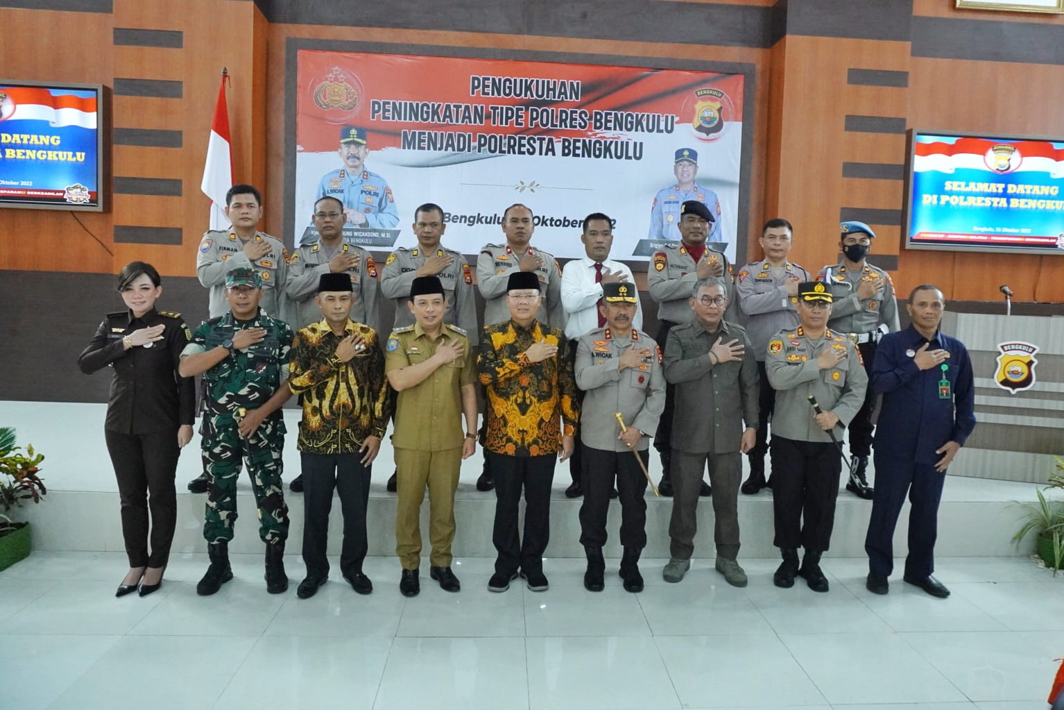 Bengkulu, Siberindo.co – Kepolisian Resor (Polres) Bengkulu resmi dikukuhkan menjadi Kepolisian Resor Kota (Polresta) oleh Kapolda Bengkulu Irjen Pol. Agung Wicaksono, Senin (31/10/2022) di aula Endra Dharmalaksana Polres Bengkulu.