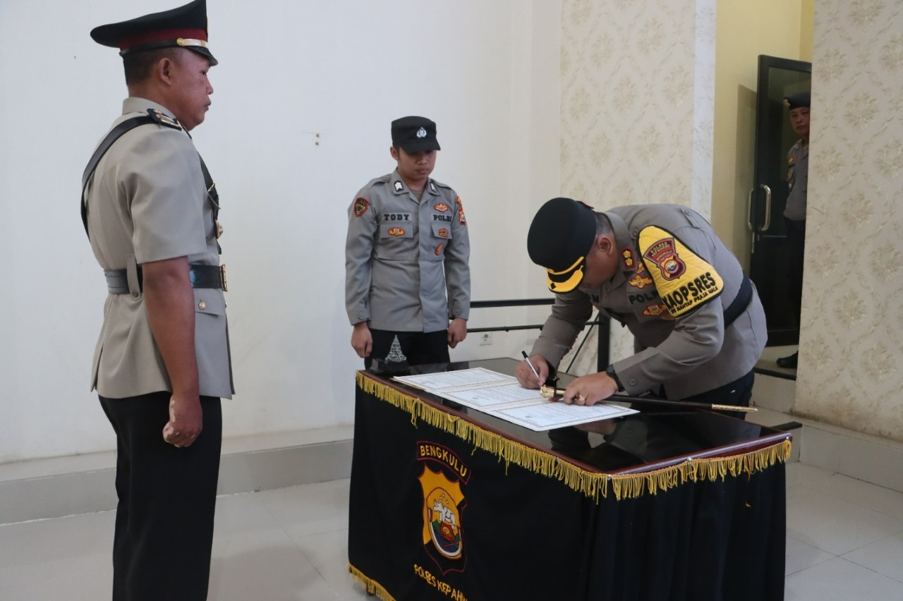 Jabatan yang diserahterimakan adalah Kasatintelkam Polres Kepahiang dari pejabat lama Iptu Singgih Wirasto kepada Iptu Agus Sugianto S.I.Kom.