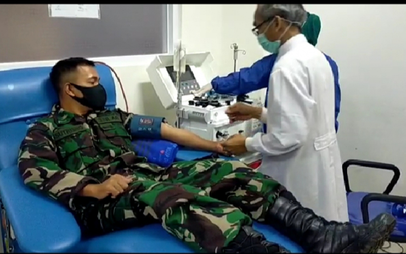 Dalam rangka membantu penyembuhan pasien covid 19, Dandim 0715/Kendal Letkol Inf Iman Widhiarto, S.T. mengirimkan anggotanya untuk melaksanakan donor plasma konvalesen. (Rabu, 30/12/2020).