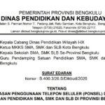 BENGKULU – Dinas Pendidikan dan Kebudayaan Provinsi Bengkulu resmi menerbitkan Surat Edaran Nomor B.400.3/26.S/Dikbud/2026 tentang Pembatasan Penggunaan Telepon Seluler (Ponsel) di lingkungan