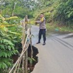 Lebong — Personel piket Polsek Rimbo Pengadang melaksanakan kegiatan pemasangan rambu-rambu dan pengamanan lokasi jalan terdampak longsor di Desa Tik Kuto, Kecamatan