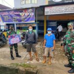 Sintang, Kalbar – Untuk mencegah penyebaran Covid – 19, Batalyon Infanteri 642/Kapuas melaksanakan pembagikan masker di warung kopi sekitar pasar Impres