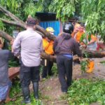 Hujan lebat disertai angin kencang mengakibatkan pohon besar tumbang yang menimpa satu unit mobil Suzuki Carry yang sedang melintas di jalan raya