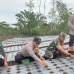 Program Ketahan Pangan, Bhabinkamtibmas Polsek Padang Jaya Ikuti Giat Penanaman Bawang Merah