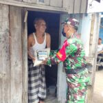 Seruyan-Danramil 1015-14/Seruyan Hilir bersama Anggota Babinsa meleksanakan Bakti sosial dengan membagikan sejumlah paket sembako kepada warga wilayah kelurahan kuala pembuang II kecamatan