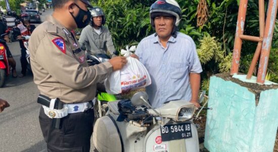 Bengkulu, Siberindo.co – Personel Ditlantas Polda Bengkulu kembali membagikan bansos kepada masyarakat yang terdampak kenaikan BBM, Rabu (14/9/2022). Pada kegiatan ini, personel