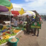 Melawi, Kalbar – Untuk mencegah penyebaran Covid – 19, Batalyon Infanteri 642/Kapuas mendatangi Pasar Rakyat guna menegakkan Protokol Kesehatan di sekitaran Kec.