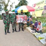 Sanggau, Kalbar – Untuk mencegah penyebaran Covid – 19, Batalyon Infanteri 642/Kapuas mendatangi Pasar Rakyat guna menegakkan Protokol Kesehatan di sekitaran Kec.