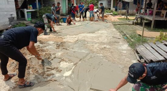 Sanggau, Kalbar – Sesuai pengamalan 8 Wajib TNI, Kompi Senapan B Batalyon Infanteri 642/Kapuas turut serta membantu masyarakat dalam perbaikan jalan Desa