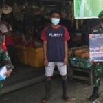 Sintang, Kalbar – Untuk mencegah penyebaran Covid – 19, Batalyon Infanteri 642/Kapuas melaksanakan penyuluhan dan pembagikan masker di Pasar Sui Durian, Sintang,