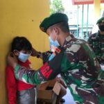 Melawi, Kalbar – Untuk mencegah penyebaran Covid – 19, Batalyon Infanteri 642/Kapuas melaksanakan kampanye pencegahan Covid – 19 dan membagikan masker di