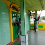 Sanggau, Kalbar – Untuk menciptakan kenyamanan dalam beribadah, Batalyon Infanteri 642/Kapuas melaksanakan pembersihan sekitar Area Masjid desa ambaong Kec. Kapuas , Kab.