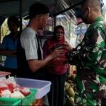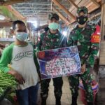 Sintang, Kalbar – Untuk mencegah penyebaran Covid – 19, Batalyon Infanteri 642/Kapuas melaksanakan pembagikan masker di Pasar Sui Durian, Sintang, Kalbar. Hal