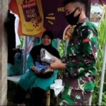 Sintang, Kalbar – Untuk mencegah penyebaran Covid – 19, Batalyon Infanteri 642/Kapuas melaksanakan penyuluhan dan pembagikan masker di Pasar Sui Durian,