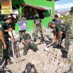 Sanggau, Kalbar – Sesuai pengamalan 8 Wajib TNI, Kompi Senapan B Batalyon Infanteri 642/Kapuas turut serta membantu masyarakat dalam perbaikan jalan Desa