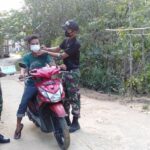 Melawi, Kalbar – menyekat di jalan, itulah cara Batalyon Infanteri 642/Kapuas membagikan masker langsung, di dusun Sidomulyo, Kec. Nanga pinoh, Kab. Melawi,