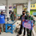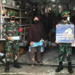 Kompi Markas, Batalyon Infanteri 642/Kapuas Melaksanakan Penyuluhan dan membagikan Masker di warung