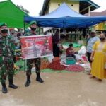 Kompi Markas, Batalyon Infanteri 642/Kapuas Melaksanakan Penyuluhan dan membagikan Masker di pasar sui durian