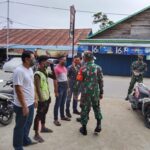 Putusibau, Kalbar – Anjangsana, itulah cara Batalyon Infanteri 642/Kapuas menyampaikan langsung tentang protokol kesehatan, di Rumah Bpk. Yohanes tokoh masyarakat dusun