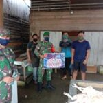 Melawi, Kalbar – Perhatikan Protokol Kesehatan, Batalyon Infanteri 642/Kapuas Kompi Senapan A membagikan masker dengan cara rumah kerumah di sekitar Pinoh Kab.