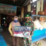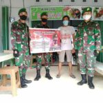 Melawi, Kalbar –Perduli akan Protokol kesehatan, Batalyon Infanteri 642/Kapuas Kompi Senapan A membagikan masker dengan cara Anjangsana di sekitar Dusun Sidomulyo Kec.