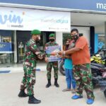 Sintang, Kalbar – Untuk mencegah penyebaran Covid – 19, Batalyon Infanteri 642/Kapuas melaksanakan penyuluhan dan pembagikan masker di Pasar Sui Durian, Sintang,