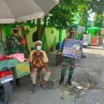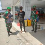 Kompi Markas, Batalyon Infanteri 642/Kapuas Melaksanakan Penyuluhan dan membagikan Masker di jalan tugu BI