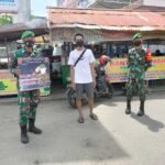 Putusibau, Kalbar – Untuk mencegah penyebaran Covid – 19, Batalyon Infanteri 642/Kapuas melaksanakan kampanye pencegahan Covid – 19 dan membagikan masker di