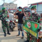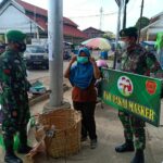 Sintang, Kalbar – Untuk mencegah penyebaran Covid – 19, Batalyon Infanteri 642/Kapuas melaksanakan sosialisasi dan himbauan pentingnya penggunaan masker di Pasar Durian