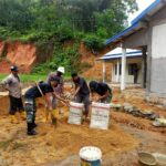Semitau, Kalbar – Prajurit Batalyon infanteri 642 Kapuas, gotong royong melaksanakan karya bakti perehaban masjid al amin di semitau hilir, Kec. Semitau