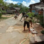 Sanggau, Kalbar – Personel Batalon Infanteri 642/Kapuas melaksanakan Karya Bakti Perbaikan Jalan sekitar Desa Lape Kec. Sei Mawang Kab. Sanggau, Kalbar. Hal