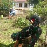 Sanggau, Kalbar – Untuk menciptakan kenyamanan dalam beribadah, Batalyon Infanteri 642/Kapuas melaksanakan pembersihan sekitar jalan gereja desa ambaong Kec. Kapuas , Kab.