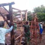Prajurit TNI dari Koramil 10/Dukuhseti Kodim 0718/Pati bersinergi bersama anggota Polsek serta elemen masyarakat lainnya melaksanakan karya bhakti pembersihan dan pembongkaran sisa