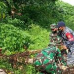 Sigap, TNI-Polri Bersihkan Pohon Tumbang di Jalan Desa Kaana Kecamatan Enggano