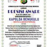 Bengkulu, Siberindo.co – Kapolda Bengkulu Irjen Pol Guntur Setyanto M.Si menerima anugerah “Presisi Award” dari Lembaga Kajian Strategis Kepolisian Indonesia (Lemkapi), Senin