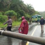 Bengkulu, Siberindo.co – Tim Siaga Aman Nusa II Bencana Alam Polres Seluma Polda Bengkulu mendatangi lokasi robohnya 2 tiang listrik di Jalan